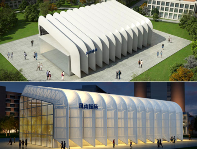 Architectural membrane except itself can be directly used in building the main body, also can be used as exterior wall decoration materials, the dot eyeball building main body appearance modelling and decoration.