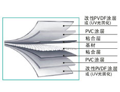 1, unique modified PVDF coating On PVDF coating added special modified additives, can not only improve the self-cleaning properties of membrane material can directly welded again, at the same time, the modified additives and additive synergism in the PVC layer, make the combination of PVDF and PVC coating more strong, not easy to peel, no longer need to coating base layer. 2, UV light curing processing Advanced UV light curing processing technology, which greatly improved the material in the strong corrosion, strong acid and alkali, salt spray, etc. The service life of the harsh conditions. 3, excellent antibacterial, mouldproof Coating surface increased corrosion, acid and alkali treatment, prolong the service life of membrane material under the special environment, increase the membrane material closure.