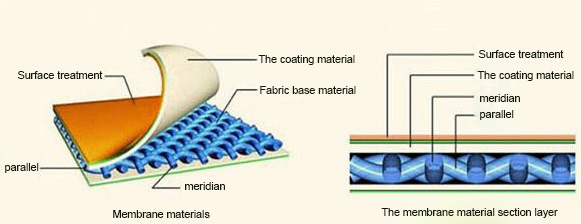 The following figure, membrane material is composed of base cloth and surface coating.