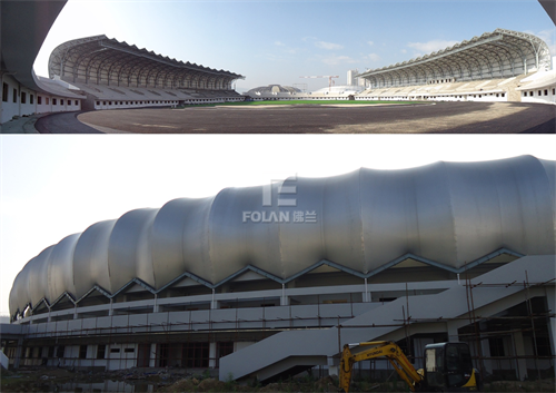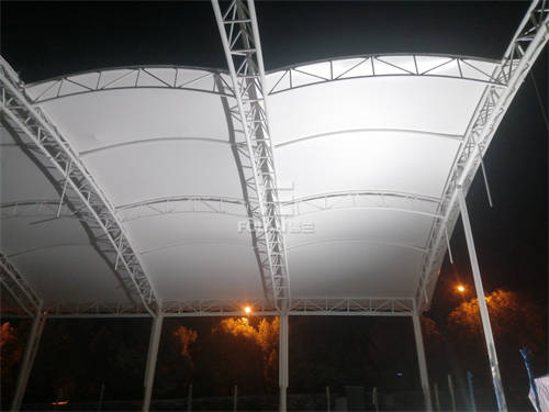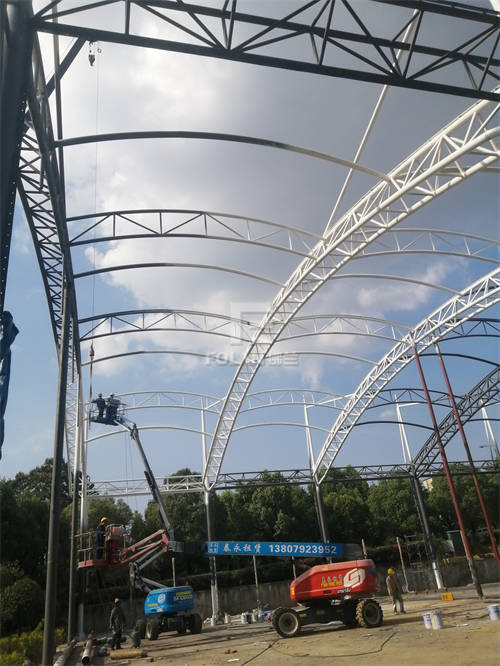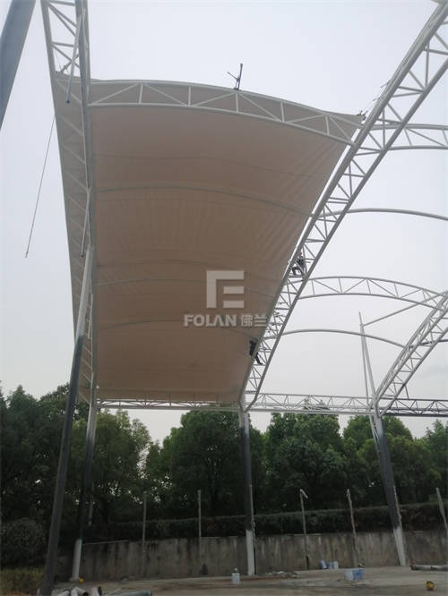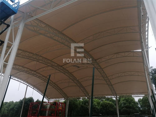 该名目座落于九江濂溪区全民健身中间,占空中积约2400平方米,我司从本年5月上旬起头撤除围网,并对球场停止了根本的挖深任务。7月底,佛兰空间膜布局无穷公司工程名目团队职员不分日夜,实现了钢构拼接、钢构吊装、钢构除锈、膜材吊装、膜材装置等一系列操纵,用时一月余,九江白鹿网球场完善完工。