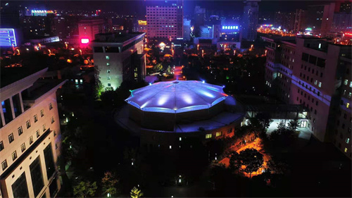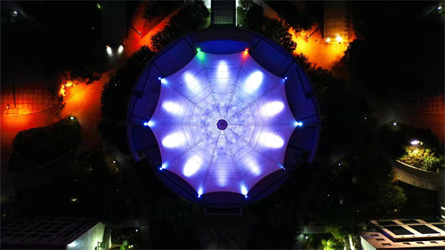 甘肃榆林市委游行中心(xin)膜平(ping)面布置类别(bie),佛(fo)兰余地2020年就这(zhei)样落成项目。去接(jie)纳用户入口PVDF膜材,单(dan)跨(kua)50M,总面积约1962.5一平(ping)米米,钢构造为桁架构造事态。类别(bie)如何设置有10盏LED泛光灯,黑(hei)夜仿佛(fo)含ꦬ苞的(de)“水(shui)荷花”,为𝔍市委提升一道扮靓的(de)美景(jing)线。