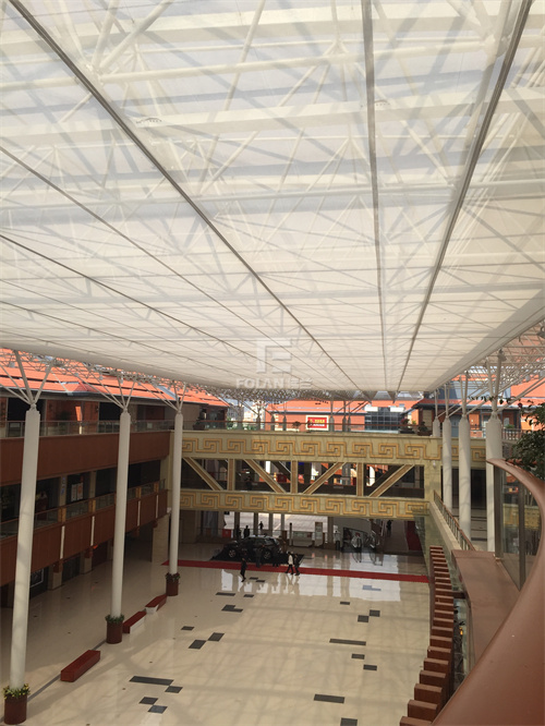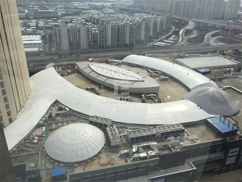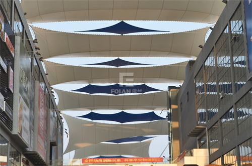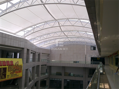 膜布局具备大跨度及透光性的特色,用于贸易穹顶,不只宽阔敞亮,还能节俭电能,佛兰空间近几年也实现了多个贸易盖顶的工程名目。