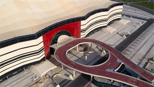 最初值得一提的是海湾球场的内立面和天花,这里利用的是法拉利吸音膜,定制成本地地毯色彩,笼盖面积约八万平方米,颇具本地文明特色。最为震动的是,该局部膜材是由本地妇女耗时六个月纯手工编织而成,她们以萨杜图案为特色,记念卡塔尔传统编织情势。