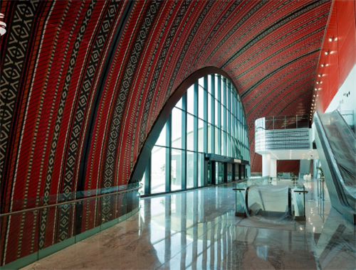 ②PES吸音膜:Serge Ferrari法拉利吸音膜80000m2,定制成本地地毯色彩,用于天花及内立面;