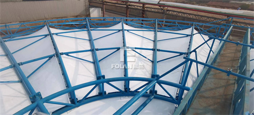 佛兰办公空间项目工程施工过程人员先在城市污水管道池大將钢功能分区装卸经久耐用好,其后再将反吊膜膜材装卸在钢结构建筑留言板,初始工程施工过程人员在地板退出城市污水管道池再盖膜材的器。