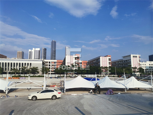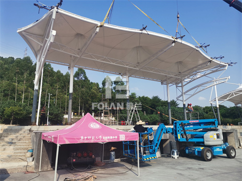 类别工程普通员工从出场音乐后,昼夜交替兼程,用时月余,实行了华附网网球场和军事体育看台的膜材传动装置,该类别顺遂峻工。