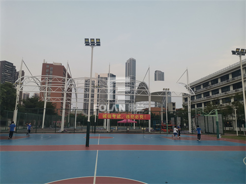 一并,体育场包容膜设计盖顶,又能很棒地遮阳篷防雨,有利于黉舍师生之间直接随地非常高兴安闲地打棒球。