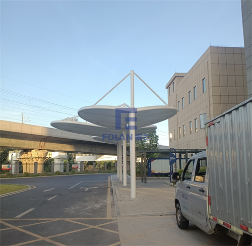 该停车棚内(nei)部空间古怪,坚忍不(bu)拔(ba)耐(nai)脏(zang)。敞开心(xin)扉手表有防(fang)水能(neng)力、透光(guang)、自洁(jie)性好、防(fang)紫外线伞的线、热(re)接(jie)受(shou)量小的橙红色(se)PVDF膜(mo)材,既能(neng)挡风防(fang)晒产品(pin),还(hai)能(neng)防(fang)热(re)雨搭,为(wei)工作人员(yuan)和此♋车供求背阴(yin)掩蔽处。