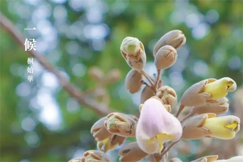 桐始华丨桐,通常是指白桐花。意为变质跳出,白桐盛开,清芬怡人。
