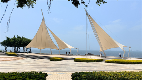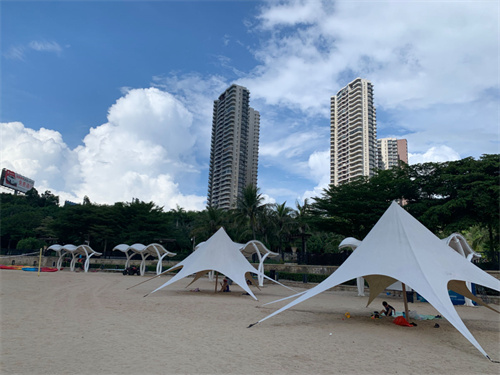 炎天,海滩是个恰当休闲地新媒体的场所,,很难发明者,海滩有良多张拉膜建盖,有一部分是可供春运歇歇的生态景观凉亭,有的则是在海滩姑且建设的膜的布置酒店。