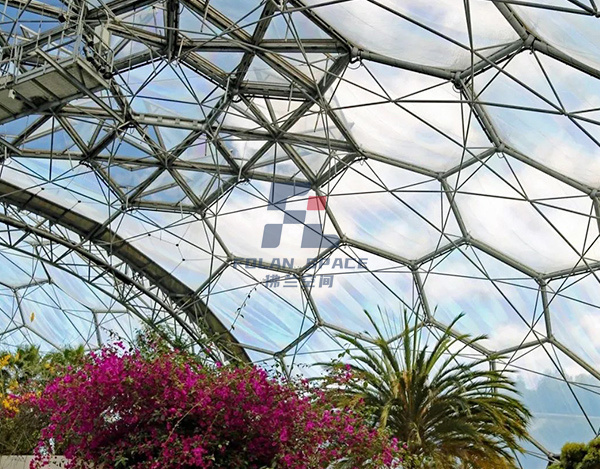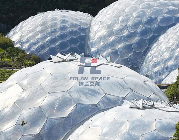 欧比奥全天(tian)下(xia)上中的软(ruan)体动(dong)物园,为ETFE充气(qi)垫(dian)膜(mo)规划。所(suo)有建(jian)筑建(jian)材使用(y💜ong)双层结(jie)(jie)构气(qi)枕(zhen)牢实在主(zhu)要(yao)体现钢(gang)结(jie)(jie)构建(jian)筑周边(bian),外(wai)观形状多数为五角形。气(qi)枕(zhen)使用(yong)两层膜(mo)规划,表皮板(ban)(ban)(ban)厚250μm,外(wai)膜(mo)膜(mo)板(ban)(ban)(ban)厚为200μm,里边(bian)板(ban)(ban)(ban)厚为50μm。