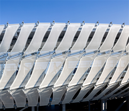 其(qi)最突(tu)出(chu)的指导思想是外剖(pou)面,剖(pou)面由(you)有(you)一种特氟龙铝层玻璃纸弹性纤(xian)维(wei)膜(即PTFE材料)做出(chu),形(xing)成了奇异的“16边形(xing)”网(wang)格网(wang)络体系。这层半(ban)通明的纺织物表由(you)༺48ཧ6块面版融洽拚接而成,总空间(jian)超过(guo)2400平小米。