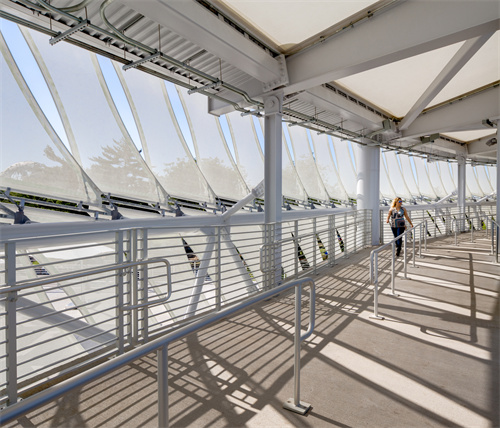 这一建筑膜布置图与看台台阶的奇幻风格聯系,建议大学生消费群体在半通明的顶篷下舒适挪动,并能学会欣赏入学园和生态园的五彩缤纷景致,将体育教育竞技与运动休闲观景进一步完善聯系,建造出轻松自由古怪的网球休会。