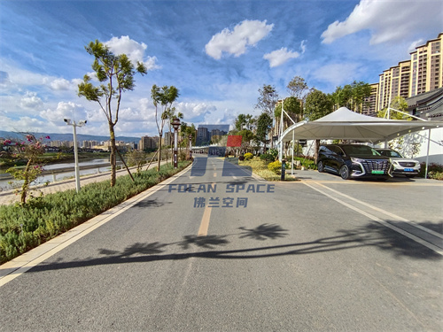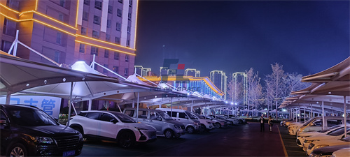 这部分清洁卫生齐截,外观奇妙的膜布置车棚,不只为住宅活动里住民来往车辆实现供给充足了遮阳篷防雨的场所,无球了顾客的小汽车,还变为住宅活动里的一道道俏丽得意线,竞升了住宅活动里水平。