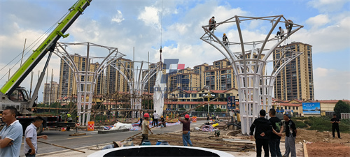 音箱话筒花钢结构建筑工程呈朱红色,最上层用钢球毗连,雅观坚韧。在膜装配图应用程序中,佛兰项目建设保安员先要戴好沉静帽,绑好沉静绳,蹲在音箱话筒花H型钢结构建筑工程的几块端点,等吊机把膜吊梁到音箱话筒花钢结构建筑工程内,师傅们就同心协力精诚团结,通力分工协作,慢慢慢慢把膜材张开,张拉及坚固。