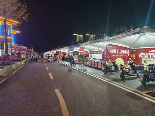 的 ,膜构造车棚在节沐日或街道办事处勾当时,还能变身为姑且品牌门店或展销会区,为本地人服务易货贸易勾当提供了快捷前提下,增进友谊本地人服务生活我的成长。